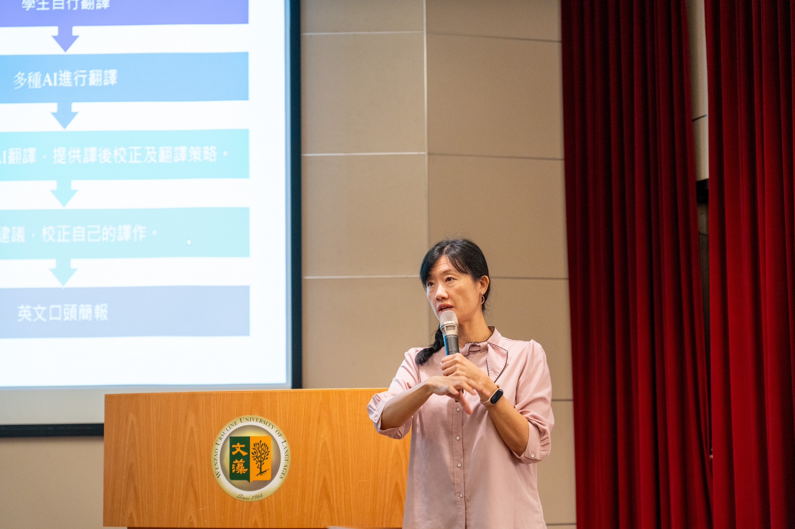 On September 3, 2025, the Teacher Professional Development Conference invited Associate Professor Hui-Chuan Wang from the Department of Translation and Interpreting to share on the topic of “Integrating AI into Curriculum.” Professor Wang introduced the diverse roles of AI in learning support and demonstrated how AI can be integrated into translation teaching. By comparing human and AI translations, students are guided to perform post-editing and enhance their translation strategies. She also shared the latest information on AI talent recognition and certification. The session inspired participating teachers to reflect on how AI can be effectively integrated into courses to cultivate students with essential competencies for the new era.