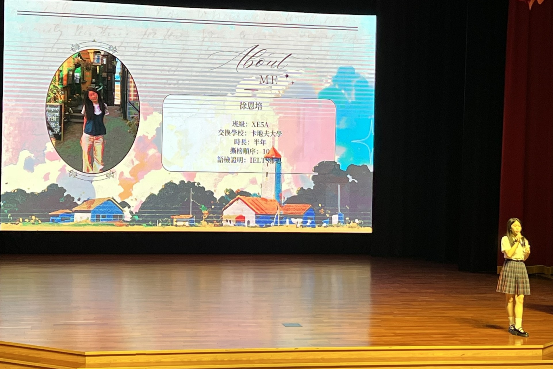 下午時段則進行各系說明會。國際學院五專英文科在系主任的帶領下,並由兩位副主任協助,分別介紹系所特色、課程重點與未來發展方向,協助學生依自身興趣與性向進行更深入的了解與選擇。活動中亦邀請在校生徐恩培分享前往英國卡地夫大學交換的申請經驗與學習收穫,讓學生與家長更具體了解國際交流的實際歷程與準備方向。