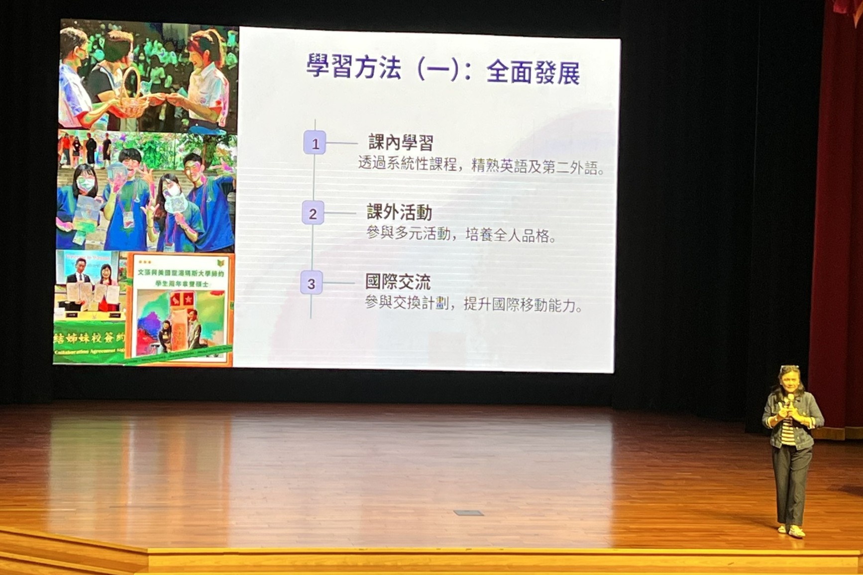 In the afternoon, department-level briefings were held. The English Program of the Five-Year Junior College under the College of International Studies, led by the Program Director with support from two Associate Directors, introduced its program features, curricular focus, and future development directions. In addition, current student Amber shared her experience applying for and participating in an exchange program at Cardiff University in the United Kingdom, offering students and parents practical insights into international exchange preparation and learning outcomes.
